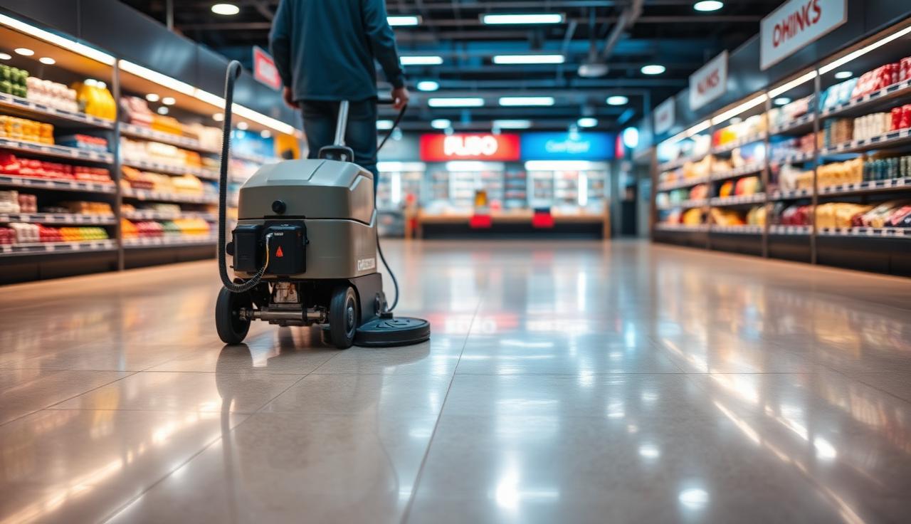 Tägliche Reinigung von Verkaufsflächen und Lagerbereichen. Für ein sauberes Einkaufserlebnis.